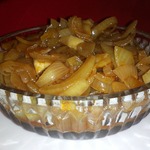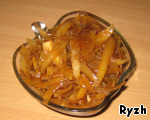 Острая луковая закуска. Вкус сильно напоминает печеный лук из шашлычного маринада. Рецепт этого блюда был размещен на сайте в 2008 году пользователем igal под названием "Лук острый "Закусочный ", и иллюстрирован мной в рамках акции «Раскраски».