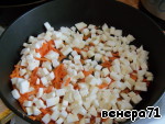 Сельдерей и морковь вымыть, очистить, нарезать мелкими кубиками,