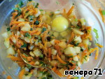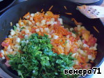Помидор, зеленый лук, петрушку - мелко порезать и добавить к овощам,