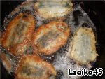 На каждую рыбку выложить ровным слоем начинку и накрыть второй рыбкой. Аккуратно, придерживая пальцами, запанировать в муке то, что получилось, обмакнуть во взбитых яйцах.