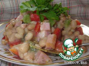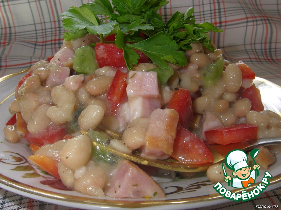 Очень простой, но вкусный и сытный салат с фасолью, ветчиной, болгарским перцем и киви! Готовится буквально за считанные минуты!