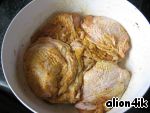 Бедрышки посыпать приправами, посолить, поперчить и натереть чесноком. Оставить на полчаса-час.