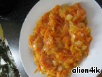 Морковь натереть на крупной терке. Лук нарезать четвертинками. Выложить все в сковороду с подсолнечным маслом и обжарить до золотистого цвета.