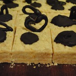 В общем, из двух противней вышло 4 средних прямоугольных коржа. Сама не пробовала, но дети обрезки уплетают, видимо, обсыпку другую придумать придется