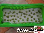 В форму выложить половину массы с карри и куркумой, посыпать горошком, накрыть остатками этой смеси. Повторяем тоже самое со второй частью. У меня форма силиконовая, если нет таковой, то можно использовать пакет из под молока, который выстелить пищевой плёнкой.