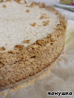 Дальше занимаемся коржами. На нижний корж первой половины торта выкладываем сливочный крем и сверху накрываем второй половинкой коржа, вернее - четвертью.