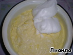 Миксером взбейте белки (добавьте щепотку соли) и аккуратно смешайте с творогом.