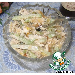По вкусу похож на классический салат из редьки с мясом и грецкими орехами, но более легкий и нежный. Мне очень понравился!