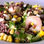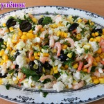 Смешиваем все подготовленные компоненты. Заправляем оливковым маслом, лимонным соком, солью и черным молотым перцем.