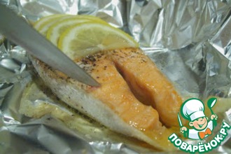 В это время нарезать порционно филе трески, важно, чтобы толщина кусков была приблизительно одинаковой. Если у Вас, как у меня, целое филе, то часть у хвоста отрезать длиннее и сложить вдвое, таким образом и эта, более тонкая, часть будет той же толщины, что и другие порции. Посолить по вкусу.