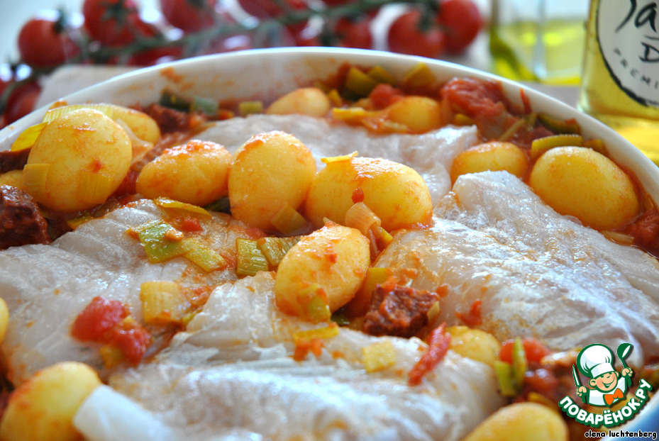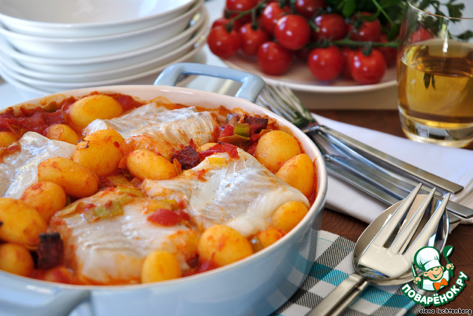 Приготовленная таким образом треска остается очень сочной и мягкой, а острый, насыщенный томатный соус с чоризо и сидром отлично подчеркивает изящный вкус рыбы. Хороший пример простой, но вкусной домашней кухни.