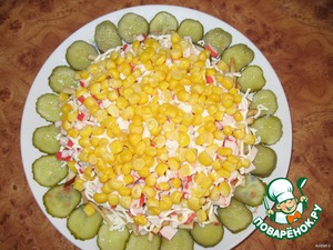 Мелко порезанные краб. палочки - майонез - кукурузка - майонез
