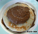 Горячие блины сразу промазываем кремом, примерно по 3 ст. л. на блин. Всего у меня вышло 7,5 блинчиков.