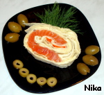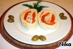 Этот рулет я готовила для "Раскрасок". Рулет получился толстоват из трeх лавашей. В общем, я его забраковала. Точнее не я, а мои мужчины, потому что много лосося. Ну, а я люблю толстый слой лосося... Это, наверно, уже 20 -й рецепт рулета из лаваша на "Поварeнке". Если администрация решит убрать его, я против не буду.
