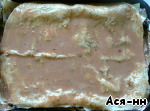 Выложить поверх него 1/4 начинки, полить соусом, снова положить лаваш, потом начинку и соус.