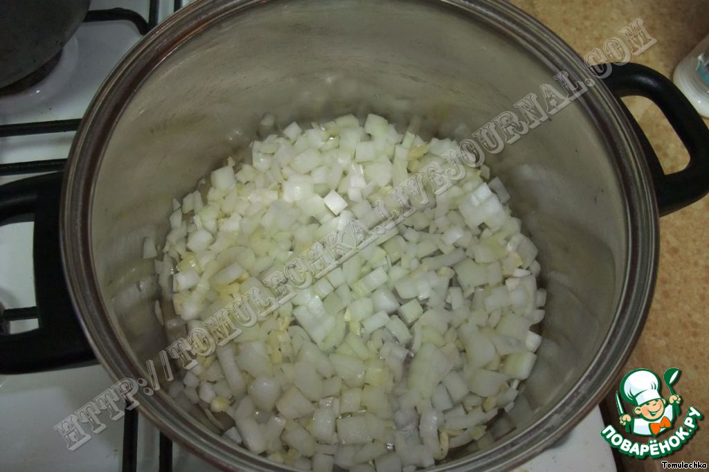 Добавляем воду и куриный бульон, доводим до кипения, уменьшаем огонь и варим 20 минут.