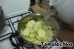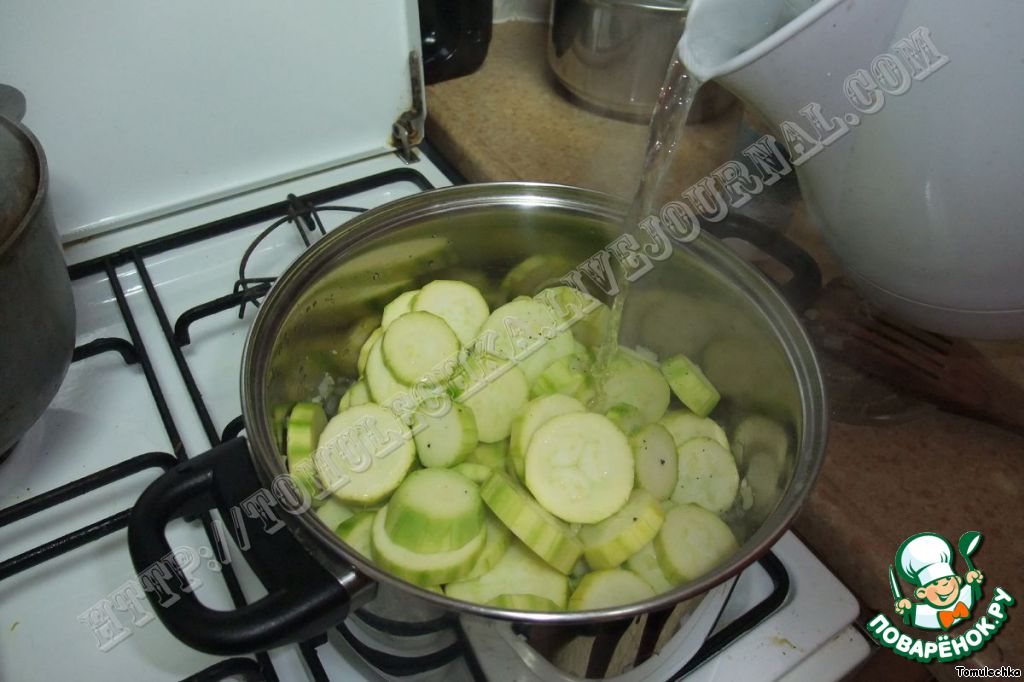 Добавляем кабачки в кастрюлю, солим и перчим.