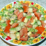 [+5]Из помидоров серединку не доставала, помидоры вкусные, стало жалко сок терять))) И лук белый, салатный.