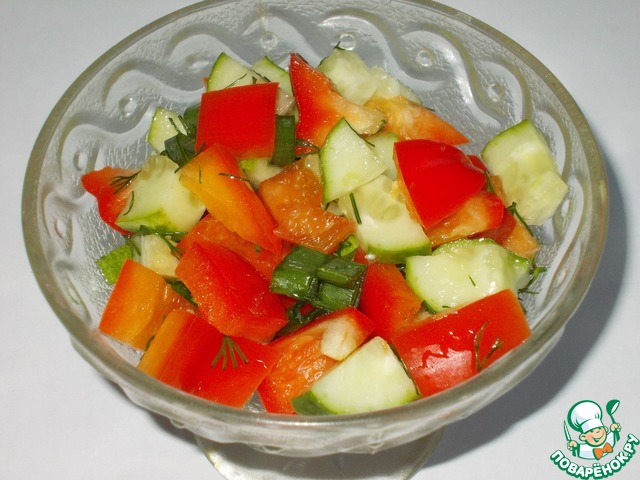 Такой салат весной может называться "Весенний бриз", летом - "Летний каприз", потом "Осенний девиз" и "Зимний сюрприз" В общем, такие овощи сейчас в магазинах круглый год, и поэтому такой вкусный салат можно тоже готовить весь год !