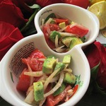 лайма, помидоры освободим от семян, луковицу нарежем четвертинками. -