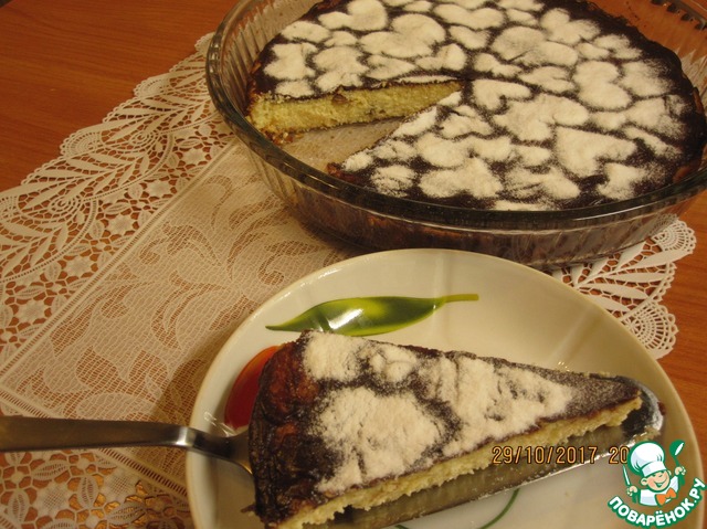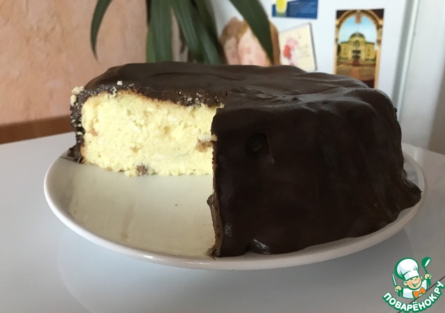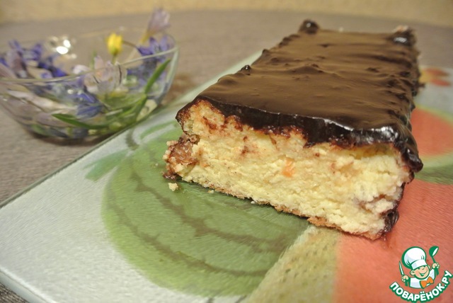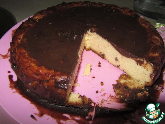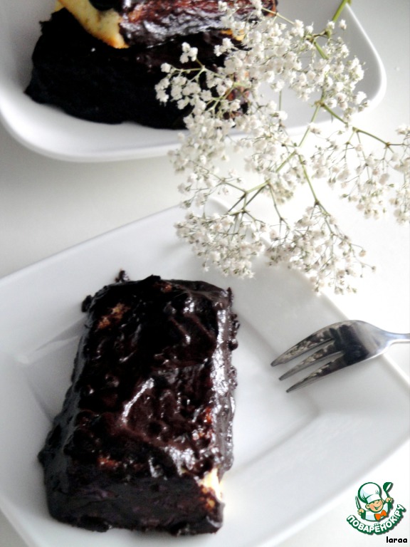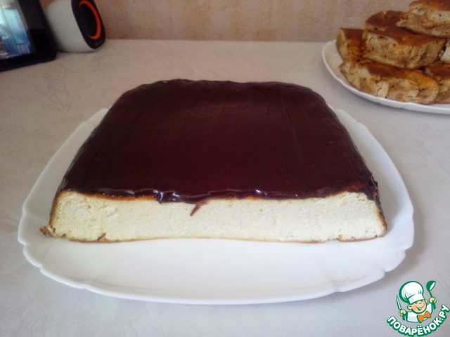 Когда сырник будет готов, достать его из духовки и дать ему полностью остыть, затем вынуть из формы, просто перевернув его и полить горячей глазурью.