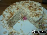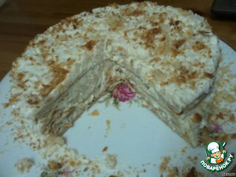 Последнюю, верхнюю лепешку, кладем обратной стороной вверх, под кремом ничего видно не будет, а поверхность будет ровной.