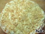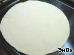 Кладем лепешку из теста и выпекаем при t 200*. Пока печется одна лепешка, вырезаем другую. Обрезки откладываем в сторону, потом испечем и их, и раскрошим для присыпки.