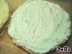 Крем мысленно делим на четыре части и промазываем каждую лепешку.