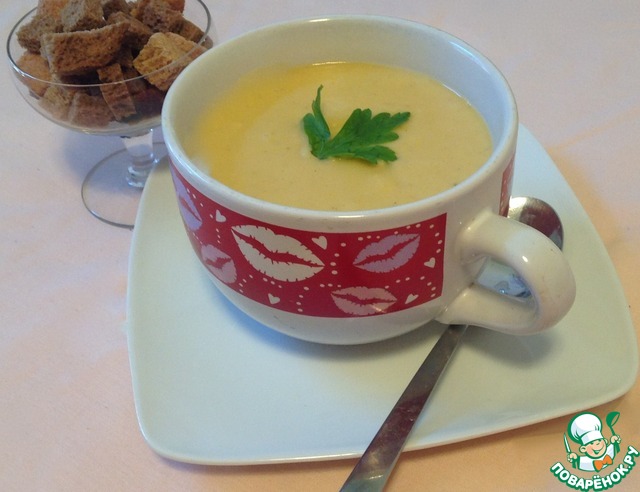 Супу даем чуть остыть, при помощи блендера превращаем его в суп-пюре. Снова переливаем в кастрюлю, солим, доводим до кипения и снимаем с огня. -