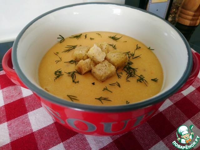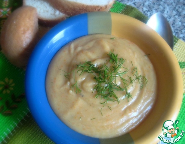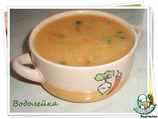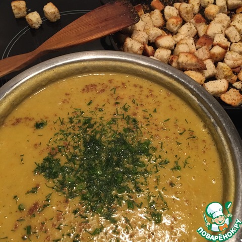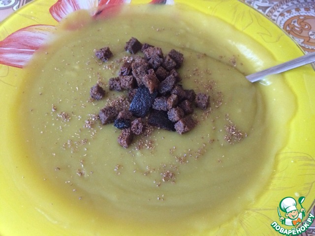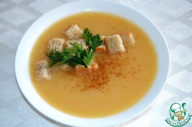 Отличный, легкий вариант горохового супа-пюре с интересными пикантными нотками сельдерея. Рецепт этого блюда был размещен на сайте в 2009 году пользователем Димочка под названием "Суп-пюре из гороха или фасоли" и иллюстрирован мной в рамках акции "Раскраски".