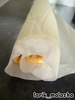 Готовый бисквит вынимаем, горячим заворачиваем в рулет вместе с бумагой. Оставляем, чтобы остыл.