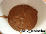 Как только загустеет, кидаем разломанный шоколад (40 г - это 8 долек), тщательно перемешиваем, чтобы шоколад растаял.
