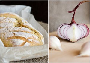 Хлеб с золотистым мякишем и приятным пикантным вкусом красного лука и чеснока. Благодарю Mariha-kitchen (ЖЖ) за идею рецепта!