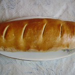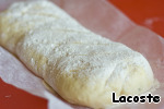 Свернуть рулетом. Слегка присыпать мукой и сделать надрезы.