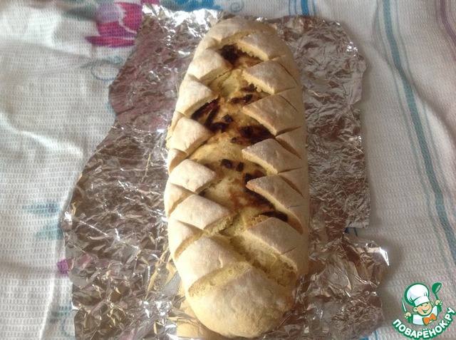 Хлеб с золотистым мякишем и приятным пикантным вкусом красного лука и чеснока. Благодарю Mariha-kitchen (ЖЖ) за идею рецепта!