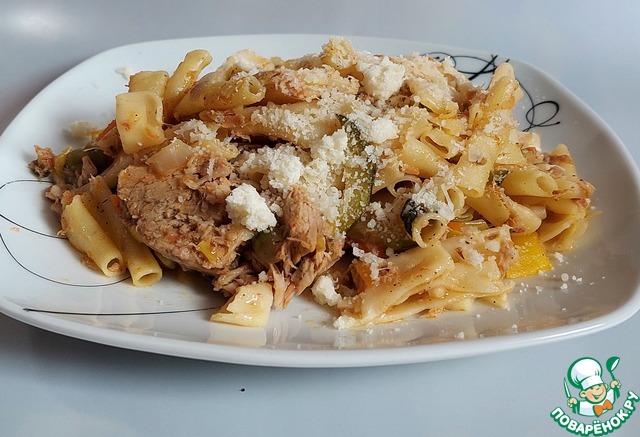 Способ приготовления этой пасты называется "пастаризотто", т. к. паста готовится не отдельно, а вместе со всеми ингредиентами в одной посуде. Такой способ варки очень популярен в Италии, но мало известен за рубежом. Рецепт этого блюда был размещен на сайте в 2010 году пользователем Антония под названием «Паста с тунцом и овощами» и иллюстрирован мной в рамках акции «Раскраски».