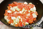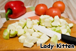 Кабачки, помидоры и болгарский перец порезать небольшими кубиками.