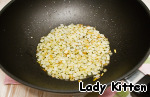В сковороде разогреть оливковое масло и поджарить мелко нарезанный лук.