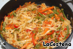 Морковь режем длинными полосками и добавляем самой последней, чтобы она сохранила твердость.
