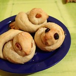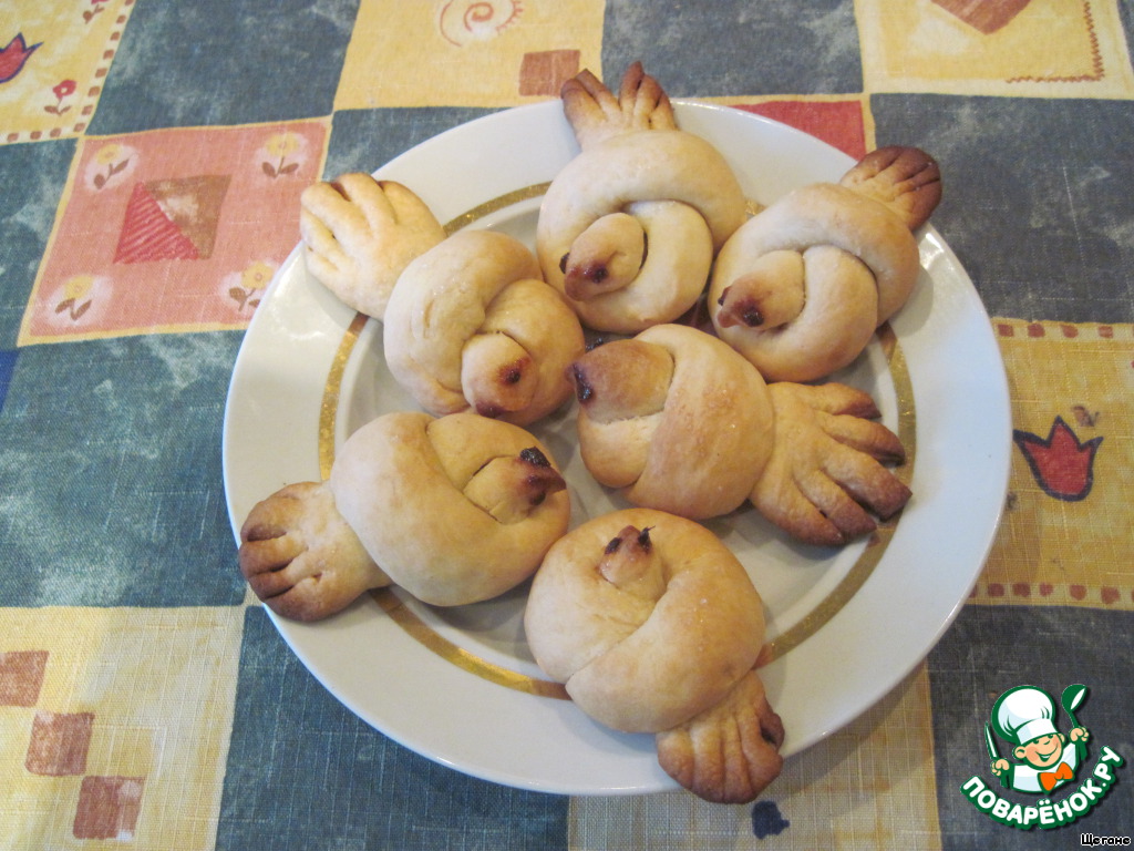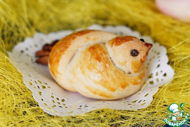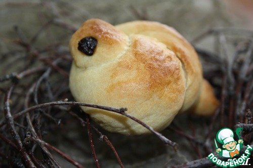 У меня получилось 6 птичек. Кто любит послаще - чуть-чуть сбрызните птичек водой и сверху посыпьте сахаром. Выпекаем в разогретой до 180 градусов духовке, до готовности.