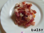 Мое дополнение: мелко порезанная сыро-копченая грудинка добавлена в заправку - это для новизны.
