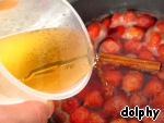 Если вы используете свежие ягоды, то сразу смешивайте их с водой и вином, добавляйте сахар и корицу. После закипания варите 5 - 10 минут, пока ягоды не станут мягкими.