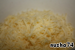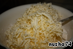 Масло натереть на крупной терке и добавить к муке и тертому сыру.