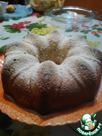 7. Готовый кекс посыпать сахарной пудрой. Можно залить глазурью. Я сверху украсила лимонным курдом.