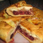 И опять пять еще и с +++++. Мне вообще нравится дрожжевое слоеное тесто, а вишня с шоколадом это нЕчто.