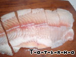 Рыбу нарезать на кусочки. По рецепту надо минтай, я пробовала с минтаем, хеком, а вот сегодня захотелось мне сома еще испытать.