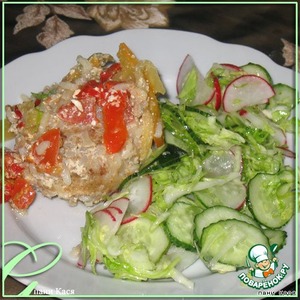 Залить наше блюдо, поставить духовку минут на 30-40, примерно 200 градусов. Следить, чтобы не подгорело.