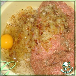 Смешать фарш, яйцо, лук. Посолить, добавить любые приправы.