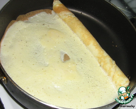 Рулетик оставляем на сковороде и наливаем следующую порцию.