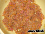 Говядину мелко порубить. Я воспользовалась мясорубкой с очень крупной решеточкой для рубленого мяса.